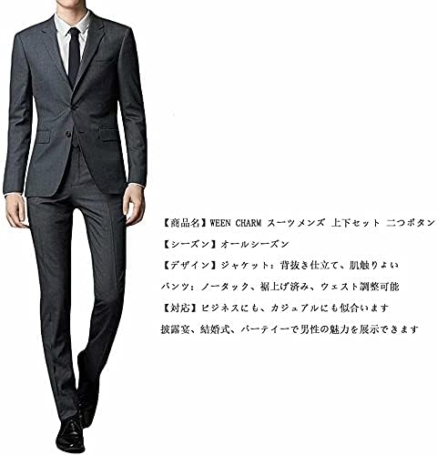 Sizes: XS / S / M / L / XL / 2XL / 3XL; Color: Gray; Fine detail has been incorporated throughout, even in the parts that aren’t visible at a glance, showing a high level of commitment.We have increased the size 3XL in response to customer demandSize Details (CM): Jacket: Shoulder width 19.7 inches (50 cm), Chest width 44.9 inches (114 cm), Length 31.1 inches (79 cm), Sleeve length 26.6 inches (67.5 cm), Slacks: Waist 39.4 inches (100 cm), Hip 46.1 inches (117 cm), Thigh width 26.0 inches (66 cm) length 43.3 inches (110 cm) Fabric features: The polyester and viscose fabric blend combines for a suit with a good amount of stretch, so it will fit perfectly when you put it on, and won’t shrink.It also has a smooth texture that feels comfortable against your skin. Works as business attire and casual wear: This top & bottom suit set is perfect for a variety of occasions all year round.It can be used as a wedding suit, party suit, after-party suit, and more. This suit for the upcoming season has just the right level of thickness. It has an exquisite silhouette that imparts a sharp and attractive look. Please confirm that you have selected the correct size prior to finalizing your order.- #20,729 in Clothing, Shoes & Jewelry ( ) #7 in