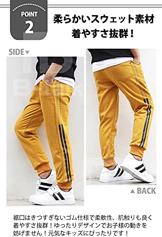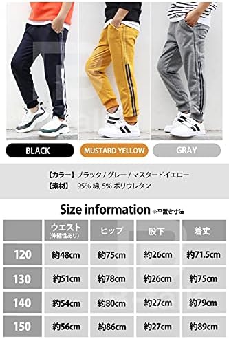 ✅スポーツ感のあるダブルサイドラインを採用したオシャレ着としても使えるキッズ用ロングパンツです。裾口はきつすぎないゴム仕様で、普段着はもちろん、スポーツ時にもトレーニングウェアとして使える万能ジョガーパンツです。お子様の防虫対策にもGOOD! ✅柔らかめなスウェット素材で柔軟性、肌触りも良く、ウエストはゴムで伸縮性があり、着やすさ抜群!ゆったりデザインでお子様の動きを妨げません!元気なキッズにぴったりです! ✅思いっきり動けるので、幼稚園、保育園への通園(登園)や小学校、塾への通学、休日のお出かけ、普段着、お家でのリラックスウエアやダンスのお稽古などのアクティブウェアとしてもおすすめです◎ ✅カットソー、ロンT、シャツ、パーカーなど、どんなアイテムにも合うので、着回し力抜群!お好きなスタイルで着こなしていただけます。スポーツMIXコーデをお楽しみください。大きいサイズもご用意しておりますので、ご兄弟やお友達とお揃いで着ていただいてもとっても可愛いです。プレゼントにもGOOD♪ ✅【カラー】ブラック / グレー / マスタードイエロー 【素材】95% 綿, 5% ポリウレタン 【サイズ】※平置き寸法 「120」:ウエスト 約48cm(伸縮性あり)/ヒップ 約75cm/股上 約26cm/着丈 約71.5cm 「130」:ウエスト 約51cm(伸縮性あり)/ヒップ 約78cm/股上 約26cm/着丈 約75cm 「140」:ウエスト 約54cm(伸縮性あり)/ヒップ 約80cm/股上 約27cm/着丈 約79cm 「150」:ウエスト 約56cm(伸縮性あり)/ヒップ 約86cm/股上 約27cm/着丈 約89cm - 130,001位ファッション ( ) - 82位