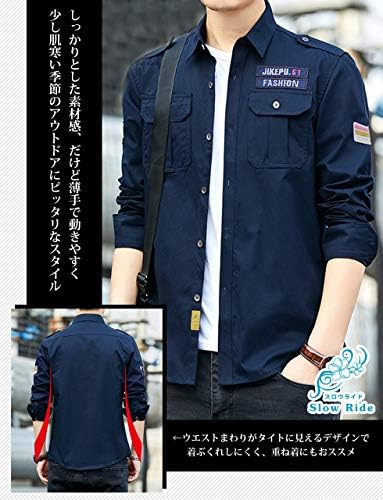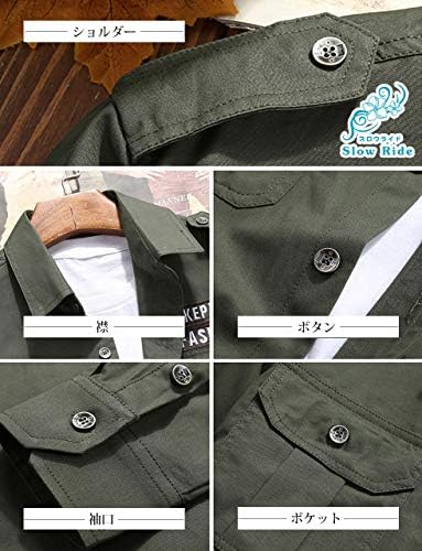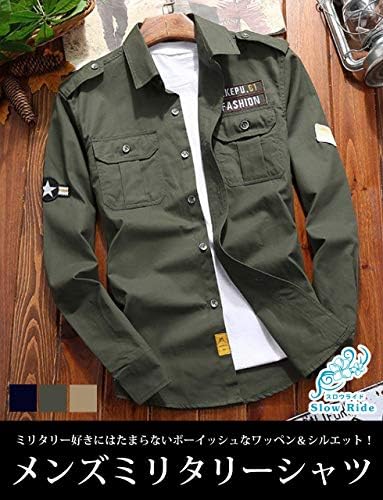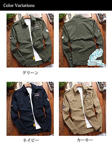 [スロウライド] ミリタリー シャツジャケット カジュアル 春 秋 冬 男 メンズ (ネイビー、グリーン、カーキ) L ~ 4XL