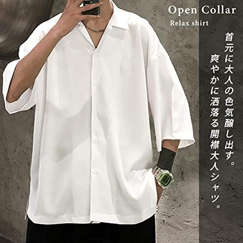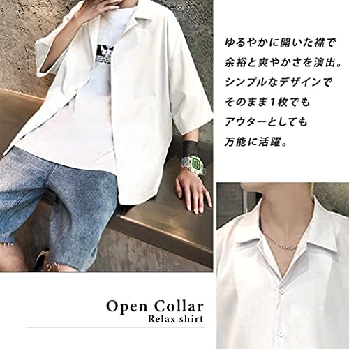 Introducing an open collar shirt with a gentle open neck that creates a summer and masculine look The thin and lightweight material has excellent breathability and quick drying properties, making it a versatile item that can be worn alone or as an inner layer This short sleeve shirt has a roomy silhouette and is perfect for a relaxed yet modern look The simple yet carefully designed design goes well with any outfit from wide pants to an A-line silhouette that matches with skinnies Reference Size (inches): Chest / Shoulder Width / Sleeve Length / Length (M: 53.0 / 25.0 / 25.0 / 25.0 / 75.0 / 25.0 / 25.0 / 75.0 / 25.0 / 30.9 (XL) / 55.0 / 30.9 inches (1 cm). ) #110,483 in Clothing, Shoes & Jewelry ( ) #5,535 in