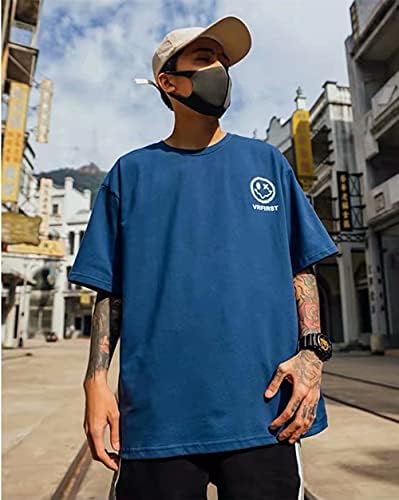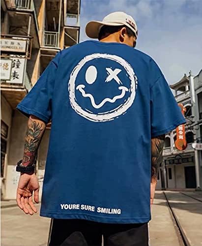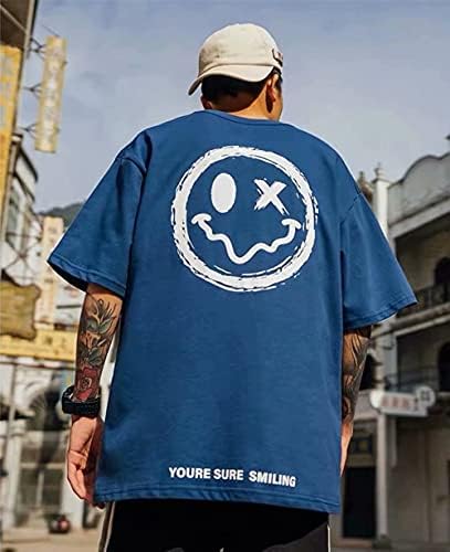 Exsaupy Men's Short Sleeve T-shirt, Smile Back Print, Funny T-shirt, Half Sleeves, Big Silhouette, Crew Neck, Cut and Sewn, Top, Thin, Stylish, Summer Clothing, Popular, Sweat Absorbent, Quick Drying,