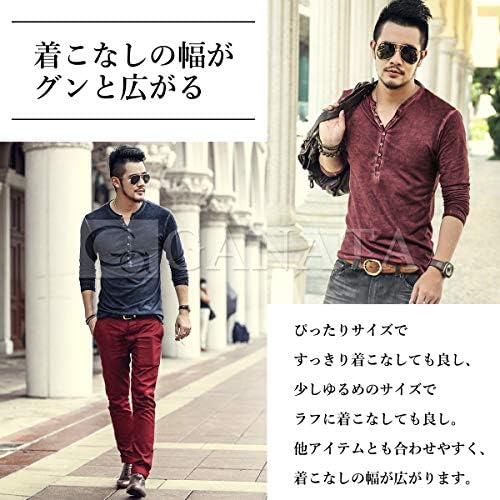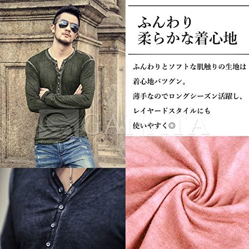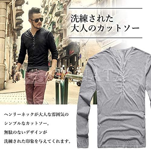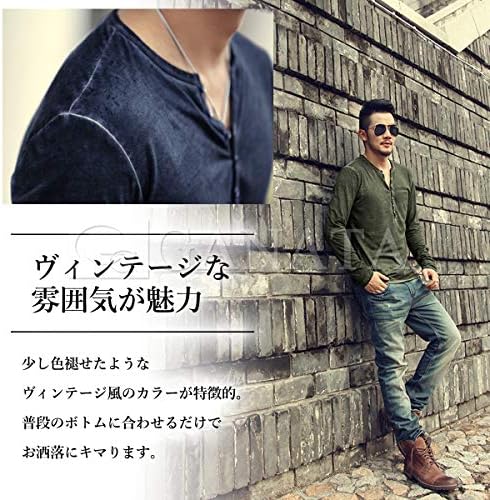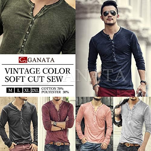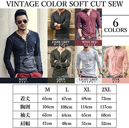 Sophisticated adult cut and sew: A simple cut and sewn henley neck gives a mature look. The streamlined design gives it a sophisticated impression. This item is a must-have item for men who wear it for dates, outings, and loungewear, and has a timeless design that not only looks beautiful, but also practicality Size: Length / Chest / Sleeve Length / Shoulder Width [M] 25.6 / 40.9 / 24.4 / 18.5 / 18.5 / 18.5 / 18.9 / 11.9 / 26.9 / 26.8 / 20.5 inches (65 / 1117 / 68 / 5 / 5 / 5 / 5 / 5 / 52 cm) *Please note that there may be slight differences in size deviations. The color of the product in the image may differ slightly from the actual product due to the conditions of the photography and your monitor's settings Attractive vintage atmosphere: Features vintage colors that appear slightly faded Just match it with your usual bottom for a stylish look. Available in a variety of colors: green, pink, navy, wine red, light gray, dark gray (Wide Variety of Styles) Perfect size for a clean look, or a slightly looser fit for a rough look. Easy to match with other items for a wide variety of dressing options. Not only is it suitable for adult casual outfits such as denim and chinos, but it is also recommended for a clean top with wide pants or cargo area and a rugged and wild underneath (Soft and Comfortable to Wear) The fabric is fluffy and soft to the touch for excellent comfort. Thin enough to be used for many seasons and is easy to use as a layered style. Recommended top for men's clothing that goes well with chain necklaces, pendants, rings, watches, and other accessories. Recommended as a gift for your husband or boyfriend #28,876 in Clothing, Shoes & Jewelry ( ) #1,059 in
