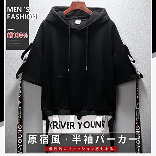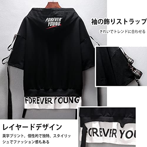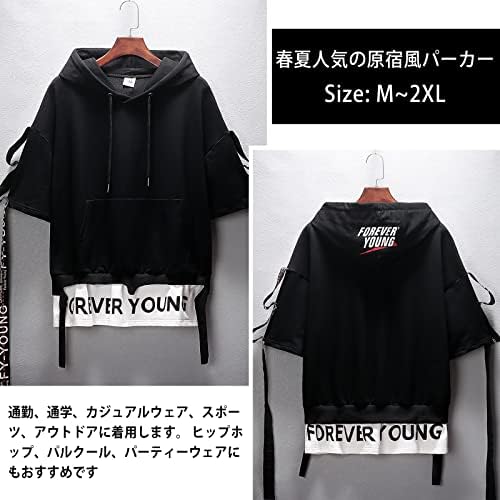 Sukinana パーカー 半袖 メンズ 夏服 大きいサイズ tシャツ フード付き インナー ヒップホップ プルオーバー 原宿風 韓国 スウェット 春夏
