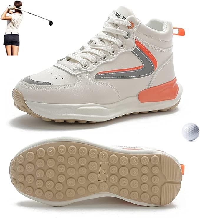 [Zilnuyt] レディースゴルフシューズ女性/女の子のためのゴルフファッションホワイトハイトップゴルフシューズゴルフスパイクレスシューズランニングシューズスニーカーウォーキング靴レディース秋冬スポーツシューズ厚底レディースゴルフスニーカー