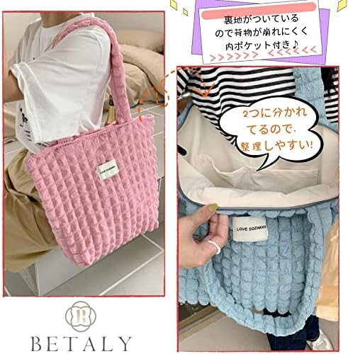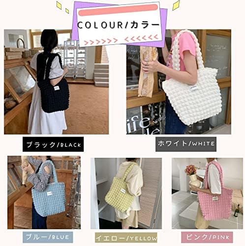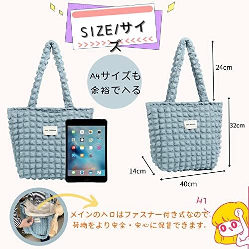 [Betaly] ベタリー トートバッグ キルティング ポップコーンバッグ レディース 縦型 ポコポコ 可愛い 軽量 通勤 通学 肩掛け エコバッグ 手提げ A4 ファスナー付き 凸凹 学生 女の子 大容量 おしゃれ カバン 鞄 韓国