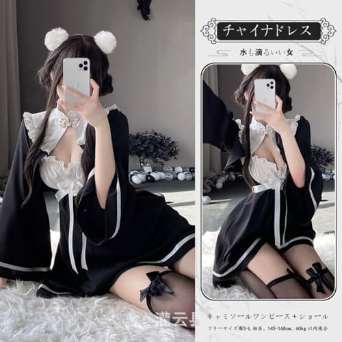 [Mominks] チャイナ服 コスプレ 2点セット (キャミソールワンピース+ショール) チャイナドレス セクシー 刺繍 可愛い かわいい ハロウィン クリスマス 文化祭 学園祭 女装 人気 Cosplay