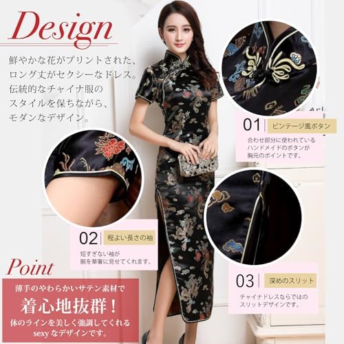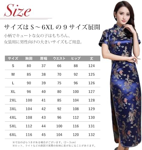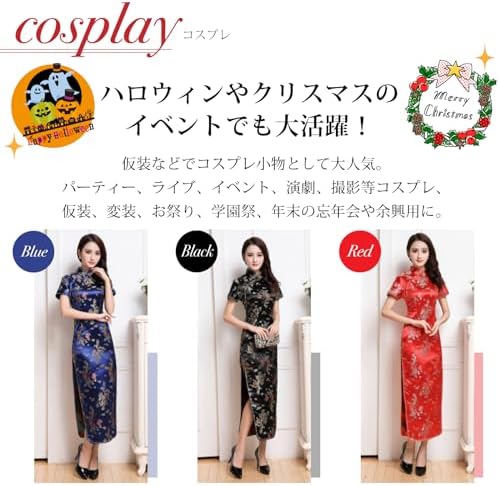 【チャイナドレス】 鮮やかな花がプリントされた、ロング丈がセクシーなチャイナドレス。 伝統的なチャイナ服のスタイルを保ちながら、モダンなデザイン。 スリットからチラッと覗く足が色っぽい。 色はエレガントなレッドとシックなブラック、鮮やかなブルーをご用意。 【大きいサイズも】 サイズはS~6XLの9サイズ展開。小柄でキュートな女の子はもちろん、女装用に男性向けの大きいサイズもご用意 【フォーマルな場面でも】 パンプスやヒールと合わせることで、フォーマルコーデとして結婚式や二次会、成人式、同窓会、ダンス衣装、パーティーやイベントにもおすすめ。 上品な光沢で大人な印象を与えます。 【ハロウィンの仮装に】 ハロウィンやクリスマスのイベントでも大活躍。仮装などでコスプレ小物として大人気。パーティー、ライブ、イベント、演劇、撮影等コスプレ、仮装、変装、お祭り、学園祭、年末の忘年会や余興用に。 【着心地のいい生地】 薄手のやわらかいサテン素材で着心地抜群。体のラインを美しく強調してくれるsexyなデザイン。 【サイズ】S~6XL 9サイズ展開 【カラー】黒(ブラック)、赤(レッド)、青(ブルー) 【対象】メンズ、レディース 【素材】ブロケード、ナイロン - 26,042位ホビー ( ) - 1,233位