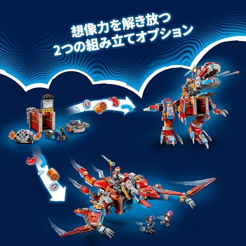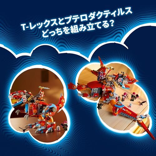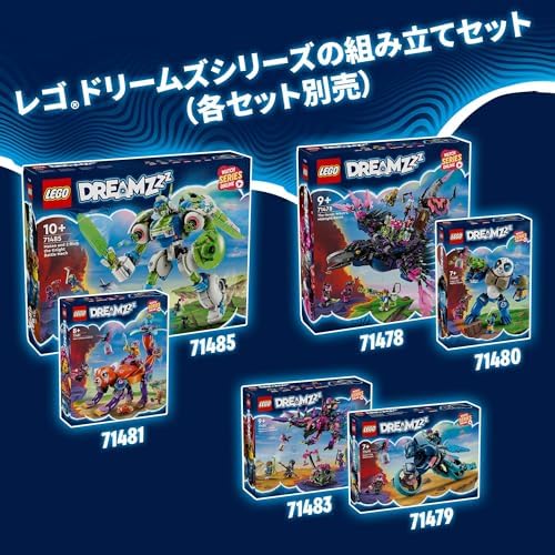 ドリームワールドへ飛び込もう – お子さまの自由な想像力を解き放つ組み立てセットです(対象年齢:9才以上) 2in1セット – クーパーのガラクタ置き場からT-レックスやプテロダクティルスをドリームクラフトしてみよう 恐竜の可動フィギュア – 恐竜モデルは、どちらも頭・口・尾を動かして遊べ、カッコいいポーズが決まります ミニフィギュア4体が付属 – ドリームチェイサーのゾーイとクーパー、その悪者バージョンのドーイとドゥーパーのミニフィギュアと、スニークのフィギュアがごっこ遊びを盛り上げます お子さま向けレゴギフト – アニメシリーズ『レゴドリームズ』や恐竜が好きなお子さまにぴったりな創造のギフトです お子さまが遊びの主役 – 本セットにはストーリー仕立ての組み立て説明書が付属していますが、LEGO Builderアプリで立体表示されたモデルを拡大・回転して組み立て方を確認しながら作業を進めることもできます どんな夢も現実になる世界 – ドリーム・クリーチャーや乗り物のモデルが種類豊富に揃ったレゴドリームズシリーズは、冒険好きなお子さまの自由な発想を応援します