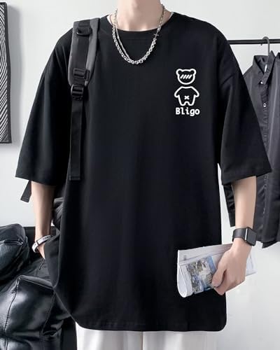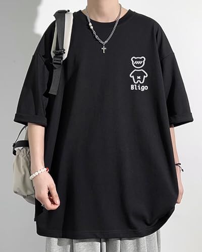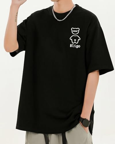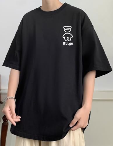Bligo Men's Short Sleeve T-Shirt, Cotton, Summer Clothing, Large Sizes, Bear Pattern, Cool, Loose, Cool, Popular, Front Print, Simple, Stylish, Popular, Solid, Silhouette, Fashion, Casual, Top, Soft,